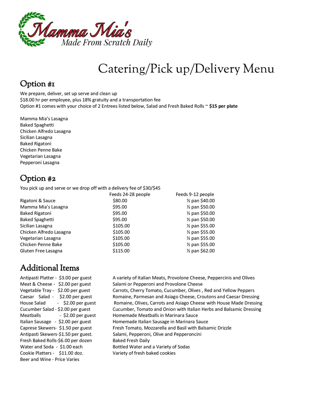 Whether it's dinner for two or you're hosting a gathering you can serve delicious Mamma Mia's cuisine at home.